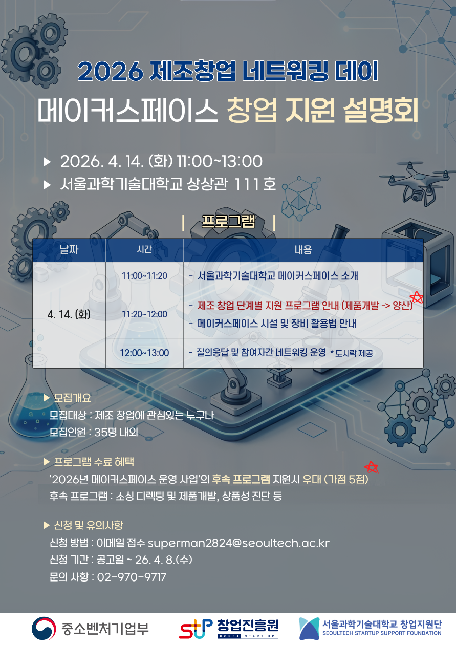 - 제조창업자의 단계별 성장 도모를 위한 본교 2026년 메이커스페이스 운영 사업 프로그램 설명회 개최