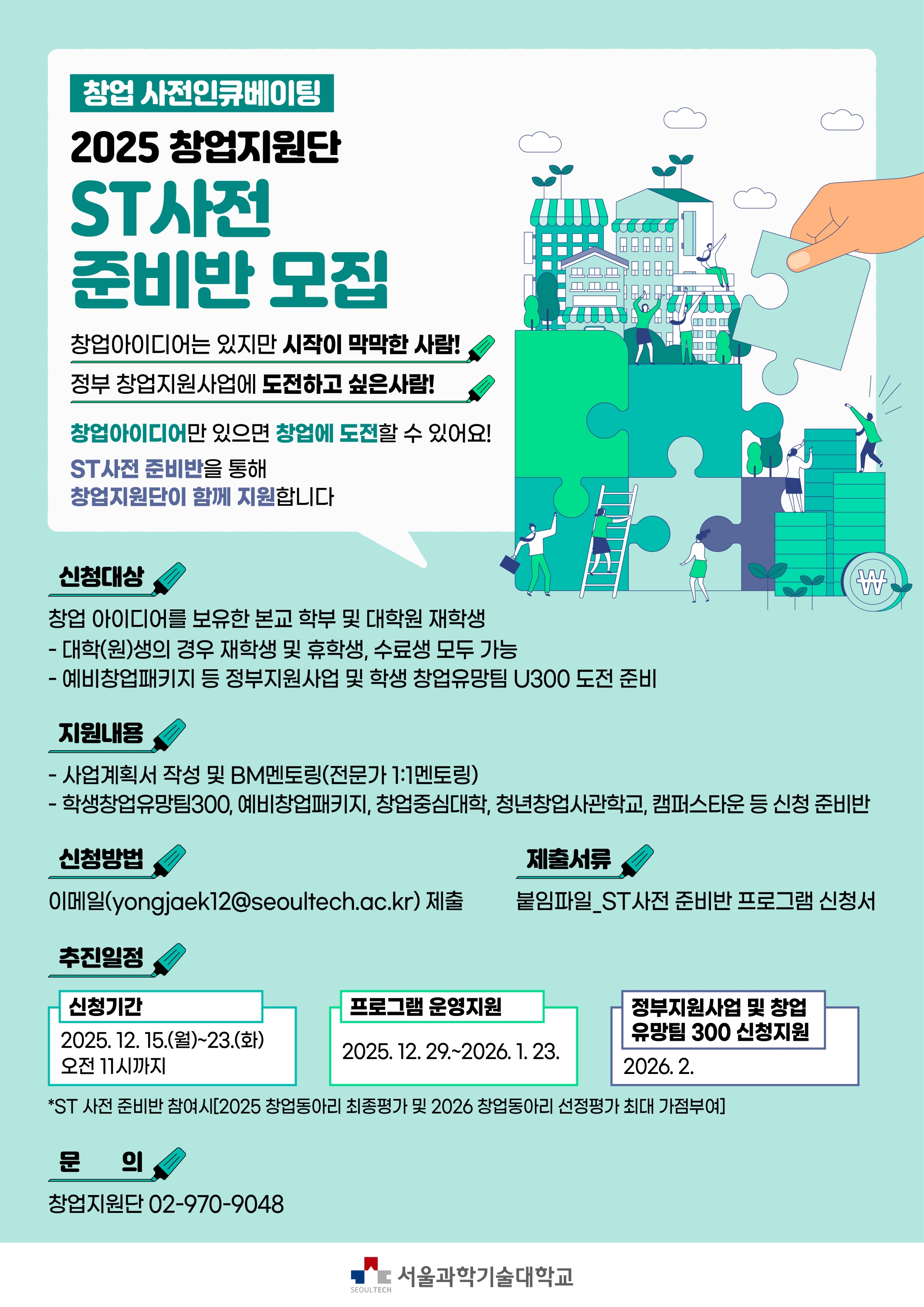 ✅ 문의사항: 02-970-9048(창업지원단)