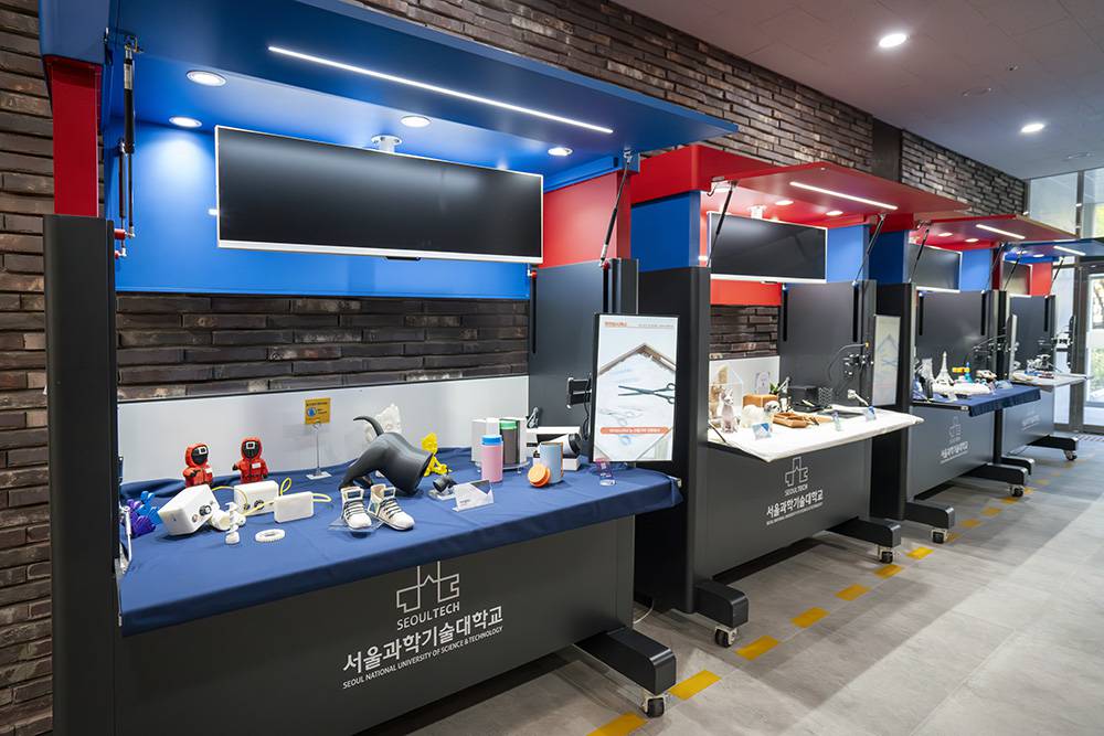 ▲서울과학기술대학교 메이커스페이스센터가 지원한 제조 스타트업의 제품이 전시돼 있다. / 출처=IT동아